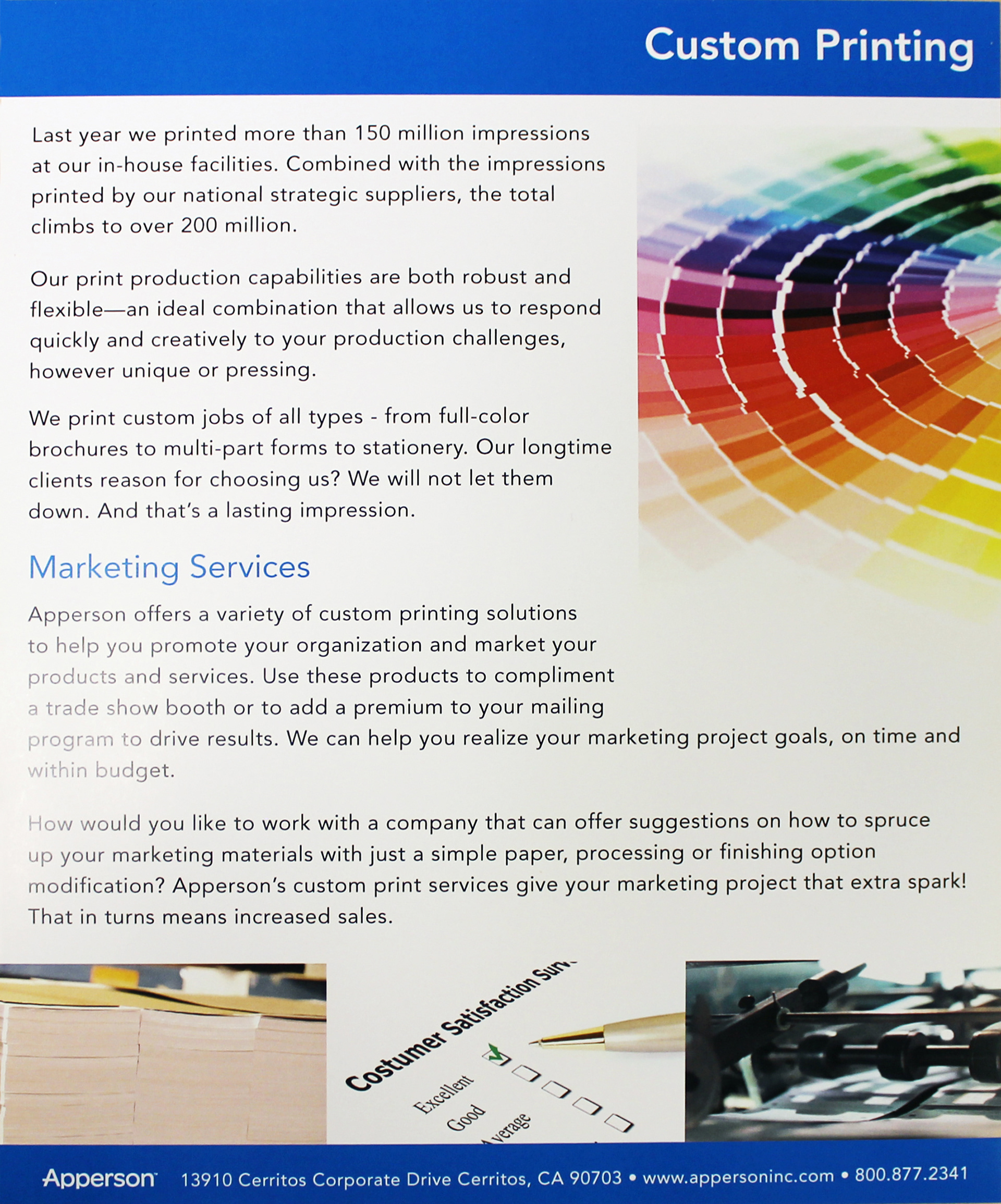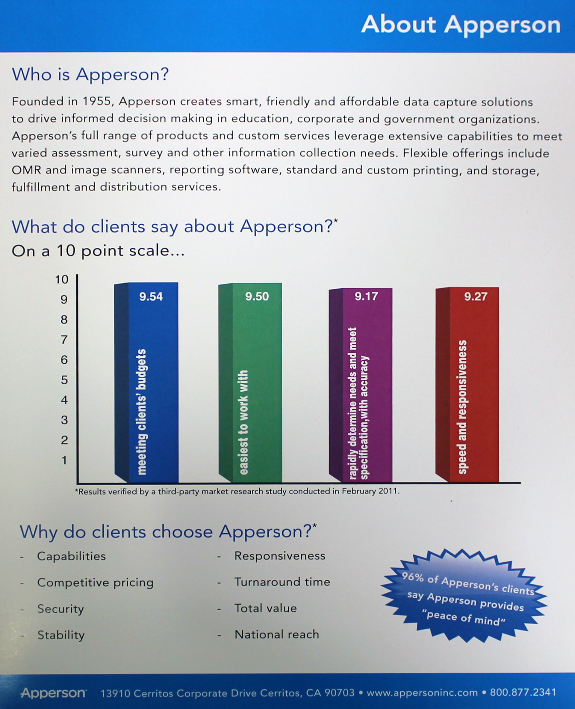 This is a folder created for our sales team to give potential customers an overview of who Apperson is and the services they provide.