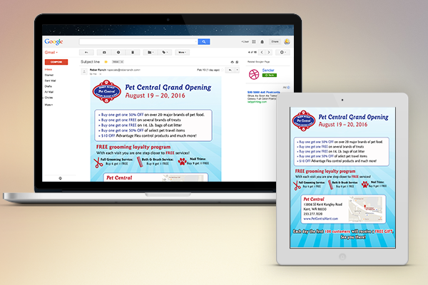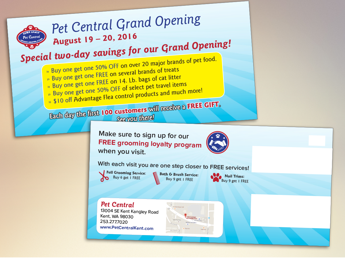 This is the advertising campaign for the grand opening of the Pet Central Boutique